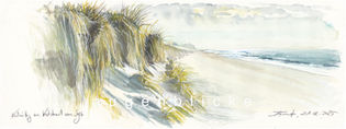 An einem steinigen Ufer der Eckernförder Bucht sitze ich auf einem großen abgerundeten Stein und habe mein Outdooratelier aufgebaut. Nachdem ich nach dem goldenen Schnitt den Bildaufbau festgelegt und die Grundzüge meines Bildes skizziert habe arbeite ich schon an kleinen Details.