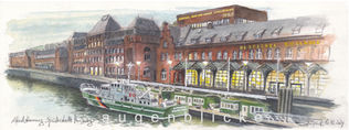 Ein wunderschönes Erlebnis für uns war neulich der Kunstmarkt der Altonale in Ottensen, Hamburg. Wir hatten ein schönes Zelt, durch die Rückwand fiel Tagelicht und meine Leinwanddrucke wurden so von hinten beleuchtet. Sehr viele nette und entspannte Besucher waren da und es gab zahlreiche schöne Gespräche. Besonders haben wir uns gefreut daß das Originalaquarell aus St Pauli bei der Balduinbrücke vor der berühmten Kneipe Onkel Otto in St. Pauli neue Besitzer gefunden hat.